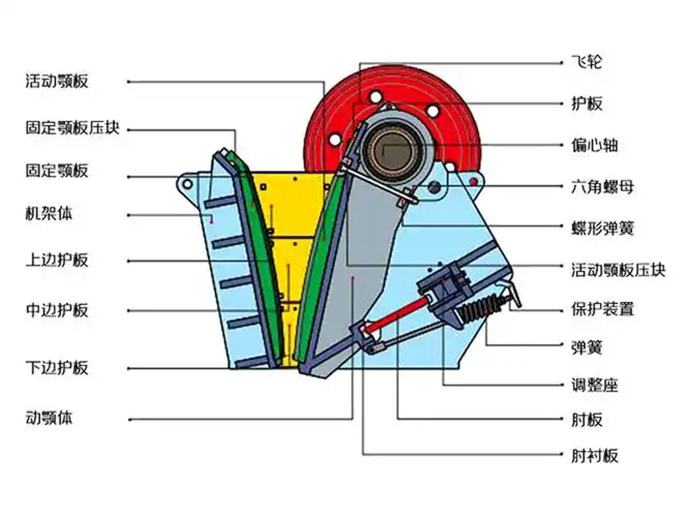 69 хацарт бутлуурын ажиллах зарчим нь үндсэндээ материал болон хоёр хацарт хавтан хоорондын харьцангуй хөдөлгөөнд суурилдаг. Бутлуурыг ажиллуулсны дараа хөдөлгүүр нь туузан дундуур эргүүлэхийн тулд хазгай голыг хөдөлгөж, хазгай гол нь хөдлөх эрүүг хөдөлгөж, эргэлдэх савлуур хөдөлгөөнийг хийдэг. Материал нь тэжээлийн портоос бутлах камерт орж, хөдлөх эрүү ба тогтмол эрүүний хоорондох үйл ажиллагааны дор шахагдаж, нугалж, зүсэгдэж, улмаар жижиг хэсгүүдэд бутлана. Хөдөлгөөнт эрүү нь тогтсон эрүү рүү ойртоход материалыг шахаж, бутлах ба бутлах хүч нь энэ үед хамгийн том; хөдлөх эрүү нь суурин эрүүгээс холдох үед бутлуурын хөндий дэх материал гадагшилдаг. Материалыг бутлах зэрэг нь эрүүний хавтан хоорондын зай болон тэжээлийн ширхэгийн хэмжээ зэргээс шалтгаална. Материалыг шаардлагатай ширхэгийн хэмжээгээр бутлах үед бутлуур нь гадагшлуулах портын хэмжээг тохируулах замаар эцсийн гадагшлуулах ширхэгийн хэмжээг хянадаг. Машины баталсан гүн хөндийн загвар нь том материалууд бутлах камерт орж, бутлуурын боловсруулах хүчин чадлыг сайжруулж, бутлах явцад материалын оршин суух хугацааг богиносгож, тоног төхөөрөмжийн элэгдлийг бууруулдаг. Машины ерөнхий ашиглалтын явцад тогтвортой, найдвартай, дуу чимээ багатай, хүрээлэн буй орчны бохирдлыг бууруулдаг. Товчхондоо 69 хацарт бутлуур нь бүдүүн ширхэгтэй бутлах үйл ажиллагаанд маш тохиромжтой төхөөрөмж юм. Энэ нь хүчтэй бутлах хүчин чадалтай, өндөр боловсруулах хүчин чадалтай, маш сайн ажлын үр ашигтай байдаг. Энэ нь янз бүрийн уул уурхай, барилга, металлурги болон бусад үйлдвэрүүдэд өргөн хэрэглэгддэг.